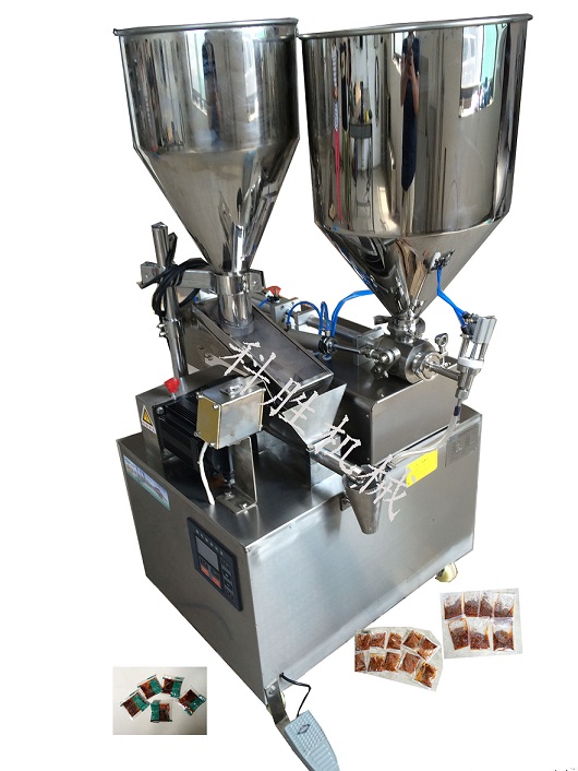 无级调整。采用辣椒籽灌装、辣椒油灌装,产品在包装后充分的融合,针对辣椒籽、辣椒油、凉皮调料进行自动包装。