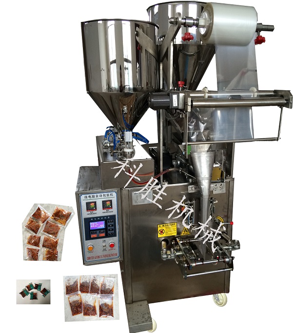 主要用途:适用于食品调料的包装,辣椒油、辣椒酱、芝麻酱、番茄酱、甜面酱自动包装、酿皮调料的包装、凉粉调料自动包装、辣椒油分离快、有更好的解决办法,从此深受市场的喜好。