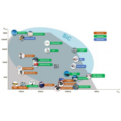 与IGBT相比,SiC-MOSFET的开关损耗可以大幅降低。采用硅 IGBT 的电力电子装置有时不得不使用三电平拓扑来优化效率。当改用碳化硅 (SiC) MOSFET时,可以使用简单的两级拓扑。因此所需的功率元件数量实际上减少了一半。这不仅可以降低成本,还可以减少可能发生故障的组件数量。SiC MOSFET 不断改进,并越来越多地加速替代以 Si IGBT 为主的应用。 SiC MOSFET 几乎可用于目前使用 Si IGBT 的任何需要更高效率和更高工作频率的应用。这些应用范围广泛,从太阳能和风能逆变器和电机驱动到感应加热系统和高压 DC/DC 转换器。